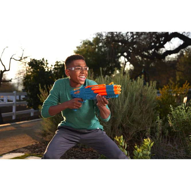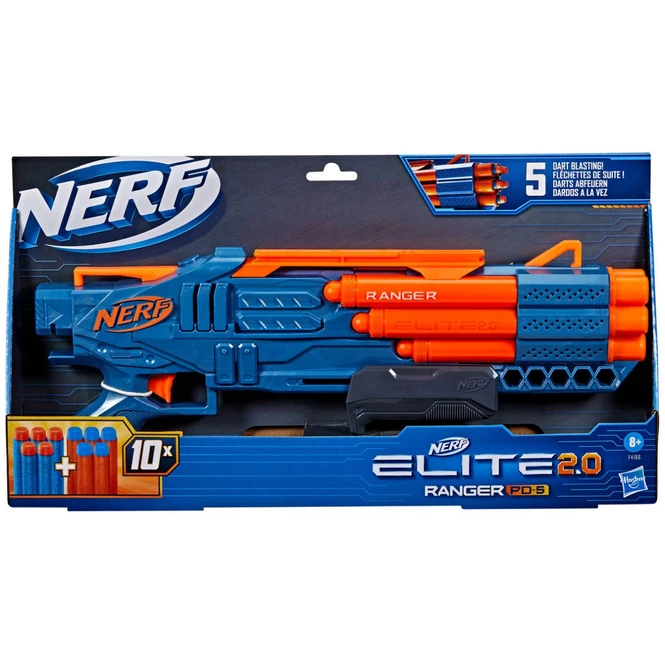 Mit dem Nerf Elite 2.0 Ranger PD-5 Blaster und seinen sagenhaften 5 Läufen seid ihr bereit für Battles. Der einfach zu bedienende Pump-Action Blaster kann einen Dart nach dem anderen abfeuern, denn er enthält 10 Nerf Elite Darts, von denen 5 in den Blaster geladen und 5 weitere zum Nachladen aufbewahrt werden können. Die 5 zusätzlichen Darts können in die integrierten Dart-Aufbewahrung des Blasters gesteckt werden, um sie zum schnellen Nachladen griffbereit zu haben. Der Ranger PD-5 Blaster ist einfach zu bedienen und blitzschnell für Nerf Action bereit! Einfach die 5 Läufe laden, den Spannschlitten vor und zurück ziehen und den Abzug drücken, um 1 Dart abzufeuern. Mit der Steckschiene und abnehmbarer Schulterstütze kann der Blaster für jede Mission angepasst werden.