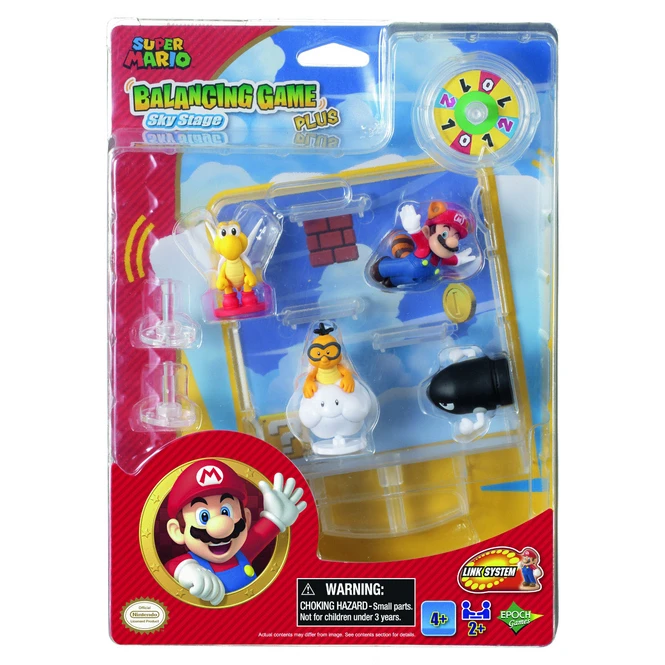 Anhand der Anweisungen auf dem Glücksrad platziert man die Figuren auf den Plattformen. Dabei muss die Stage immer im Gleichgewicht sein, sonst fallen die Figuren herunter. Mit Geschicklichkeit und Glück kann man dieses Level bestehen. In diesem Spiel sind vier Super Mario™ Figuren und ein Glücksrad enthalten, die auch in allen anderen EPOCH Super Mario™ Gesellschaftsspielen, die mit dem Zusatz „Link System“ gekennzeichnet sind, verwendet werden können. Spielen. Sammeln. Kombinieren. Das Super Mario™ Balancing Game Plus Sky Stage kann mit anderen Plus Stages (Underwater, Desert) zu einer großen Balancing Stage kombiniert werden und ist für 2 oder mehr Spieler geeignet. Altersempfehlung ab 4 Jahren.