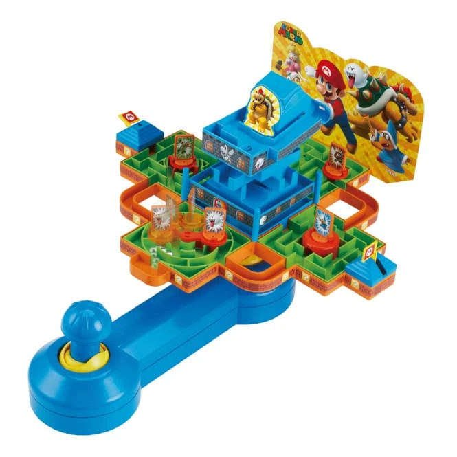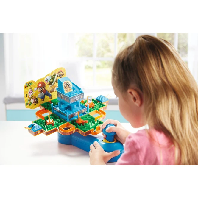 Pinzessin Peach ist auf dem Turm gefangen und muss befreit werden! Mit dem Joystick kann das Labyrinth bewegt werden. Bringt man die Kugel durch das Labyrinth bis ganz nach oben auf den Turm, öffnet sich Peachs Gefängnis. Aber Achtung! In jedem Labyrinth befinden sich kleine Fallen, die die Kugel aufhalten. Die Labyrinthe können im Maze Game hin und her getauscht werden, um ein individuelles Spiel zu erstellen. Es sind über 120.000 Kombinationen möglich. In diesem Spiel sind 5 Super Mario™ Figuren Aufsteller enthalten, die auch in allen anderen EPOCH Super Mario™ Gesellschaftspielen, die mit dem Zusatz „Link System“ gekennzeichnet sind, verwendet werden können. Spielen. Sammeln. Kombinieren. Für einen Spieler geeignet. Altersempfehlung ab 4 Jahren.